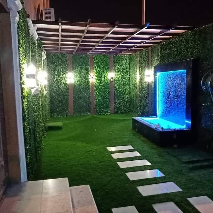 - كما يمكنك تزيين الجدران باستخدام العشب الجداري الرائع مع إضافة النقوش الاقية التي تتلائم مع الخضرة.