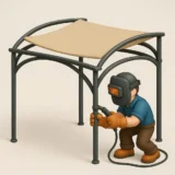 ينفذ حداد بجدة مظلات حديدية ثابتة أو متحركة توفر ظلًا وأناقة للحدائق والممرات.