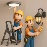 💡 2. تركيب وحدات الإنارة الداخلية والخارجية